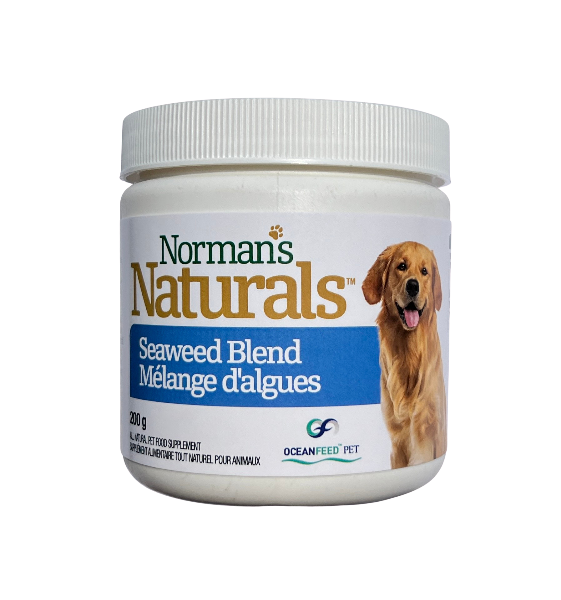 Norman’s Naturals™ Seaweed Supplement supports healthy digestion, immunity, and overall wellness in dogs. Made with the patented Ocean Feed™ blend of green, red, and brown seaweeds, it’s rich in natural prebiotics, essential vitamins (B-complex, A), minerals like iodine, calcium, and magnesium, plus antioxidants. Naturally occurring omega-3s promote a healthy skin and coat, while anti-inflammatory compounds help keep your dog comfortable and the immune system balanced—naturally.